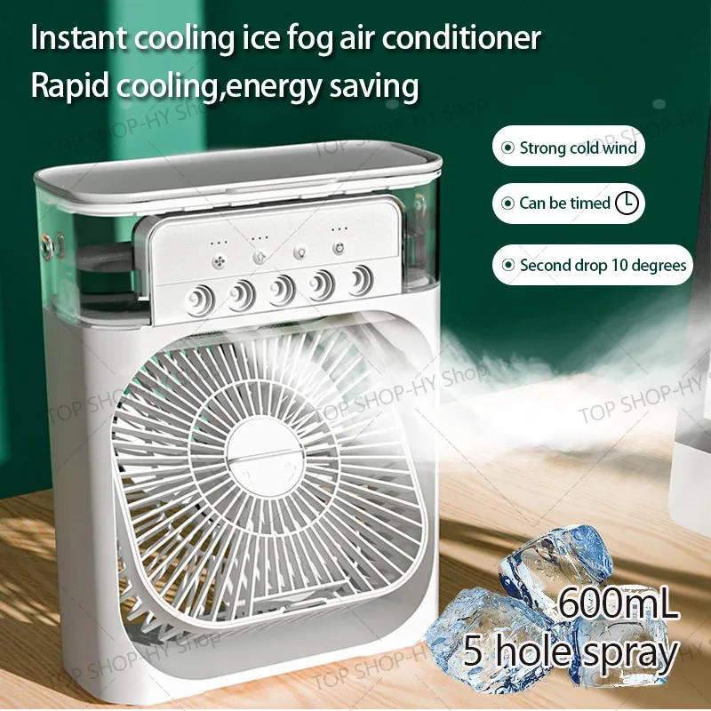 Upgrated Personal Air Conditioner and Fast Cooling: The latest portable air cooler integrates desk fan, air cooler, misting humidifier and air circulator. The small evaporative air cooler cooling you in hot summer and can add ice water or small ice cubes to fast cool down the hot air around you, humidifying the air in dry autumn and winter.